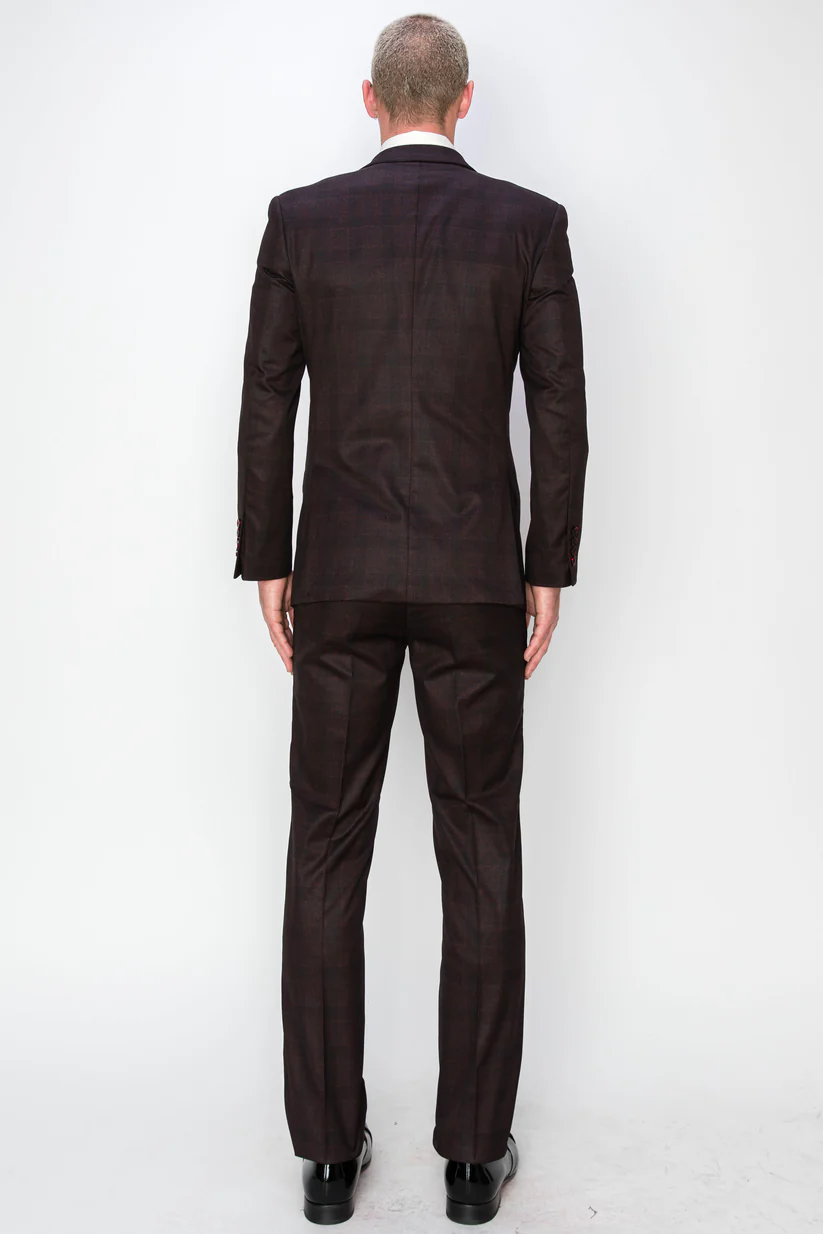 The matching Burgundy Plaid Vest enhances the entire suit with its sleek, tailored fit. Crafted to perfection, this vest features the same rich burgundy plaid pattern, creating a cohesive, polished look. With adjustable straps at the back, it ensures a perfect, personalized fit. Wear it with the full suit for a sharp appearance or on its own for a more relaxed yet stylish look—either way, it adds a sophisticated layer to your ensemble.